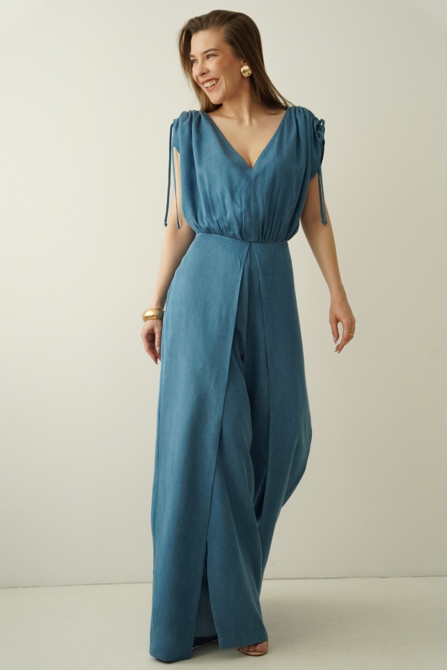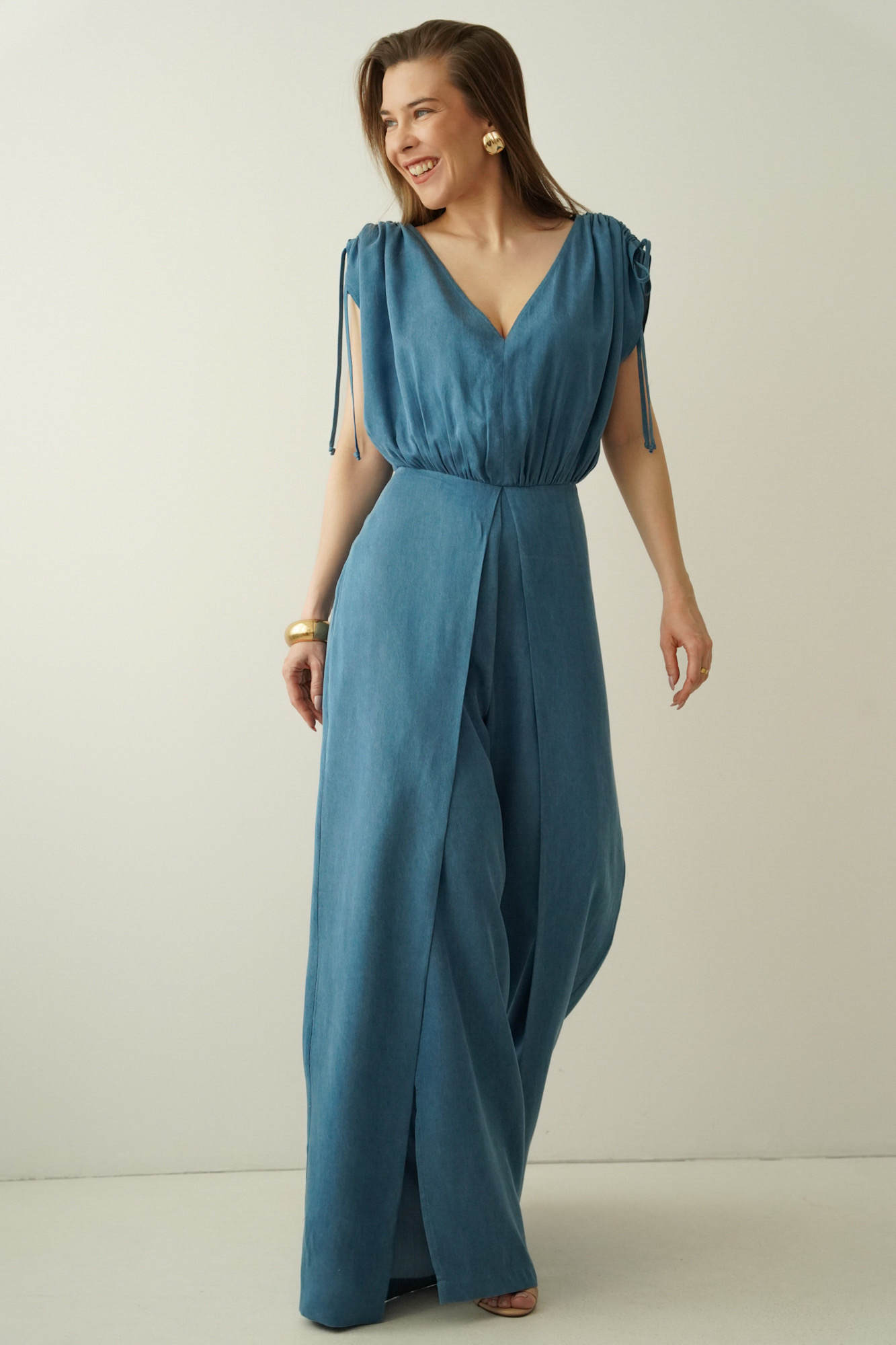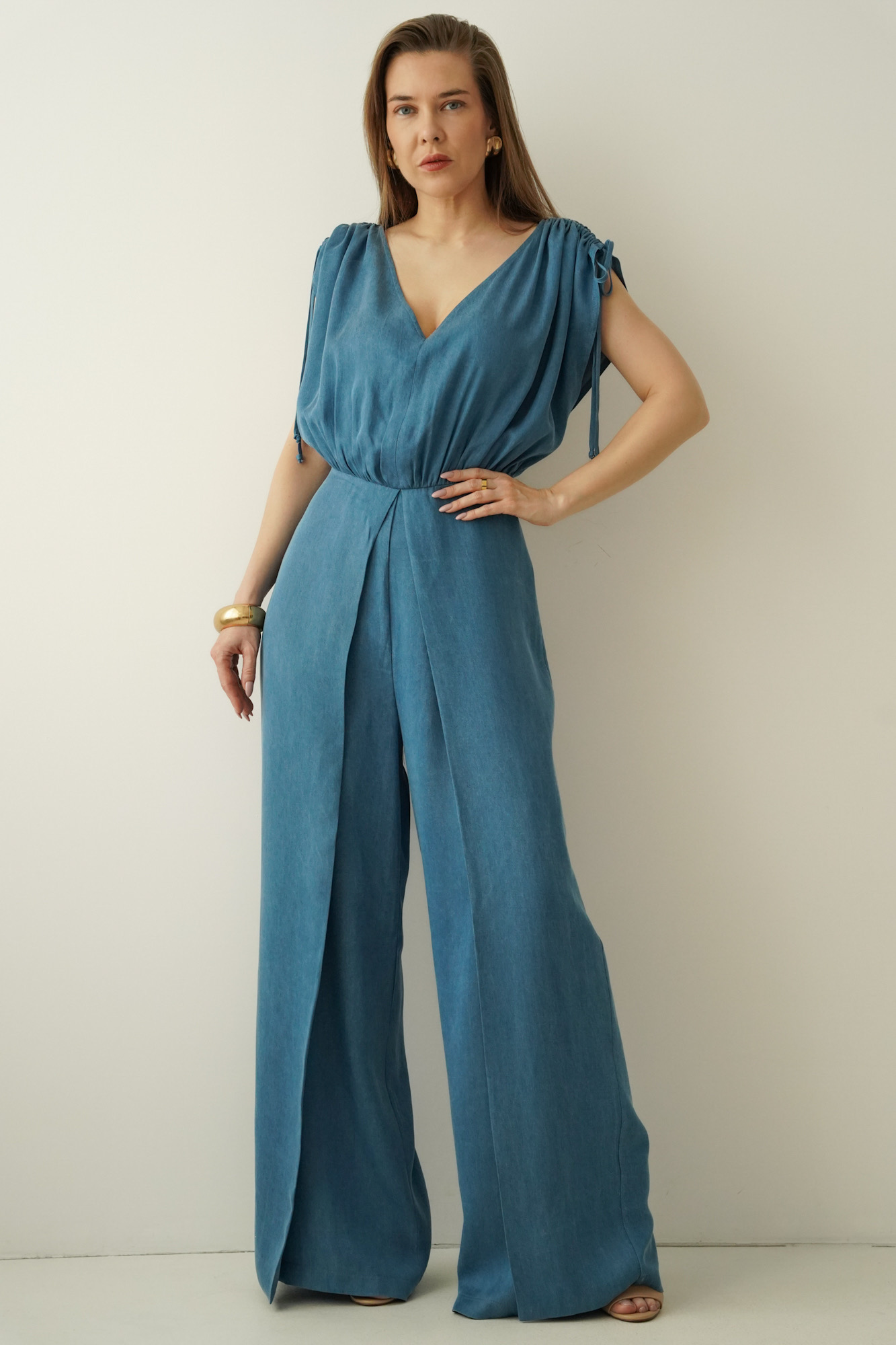 Women's jumpsuit with envelope-cut trousers Jasmine mid denim blue