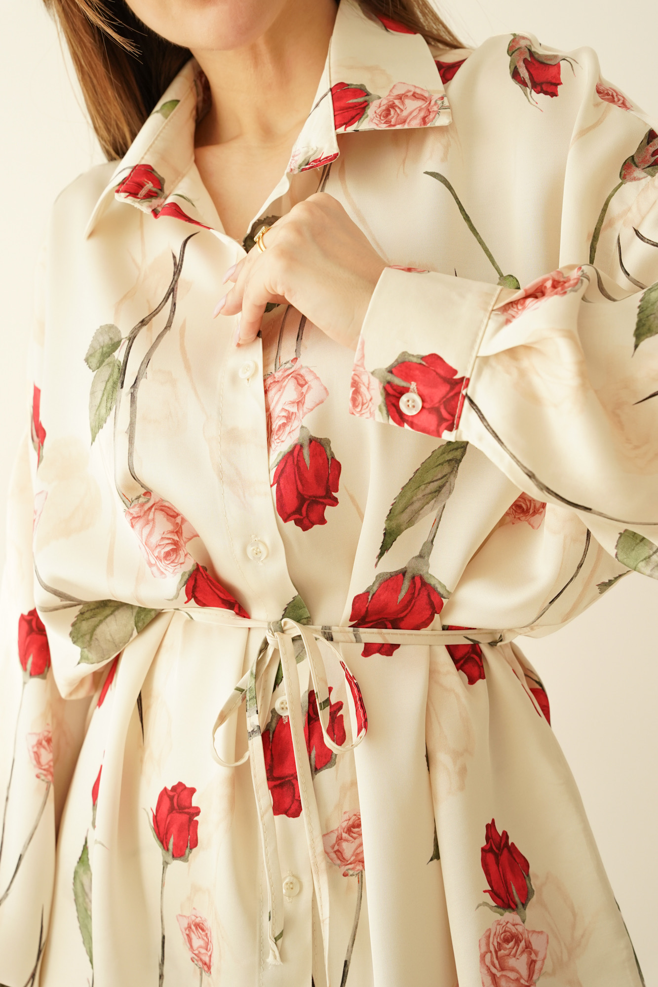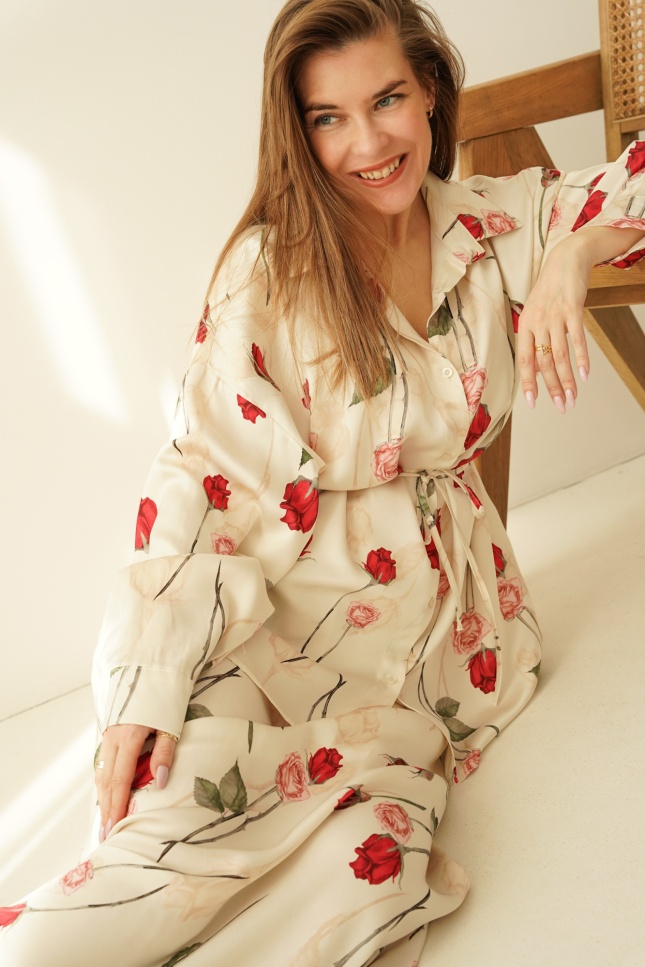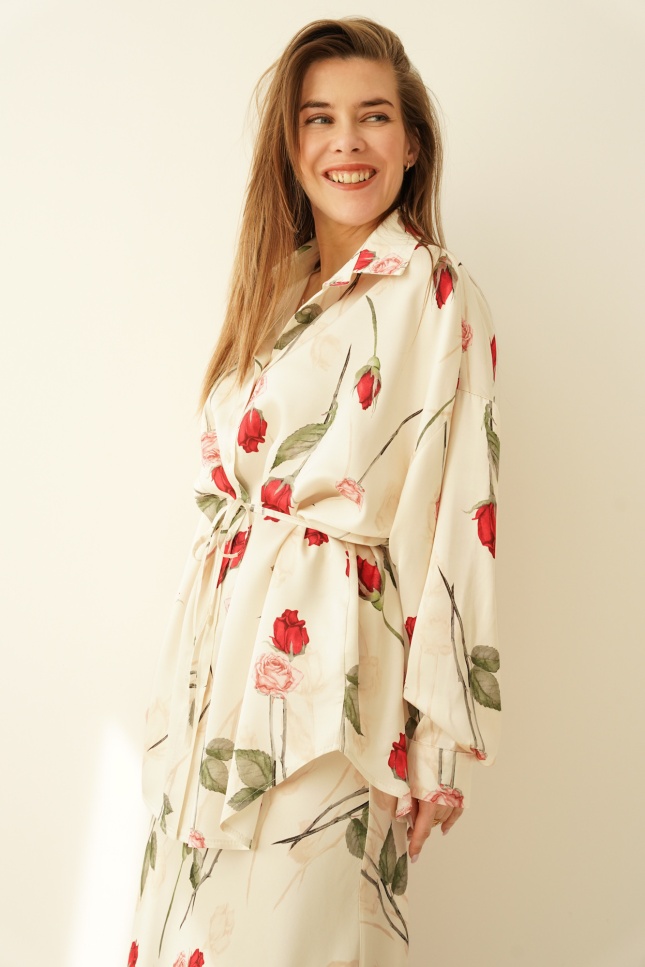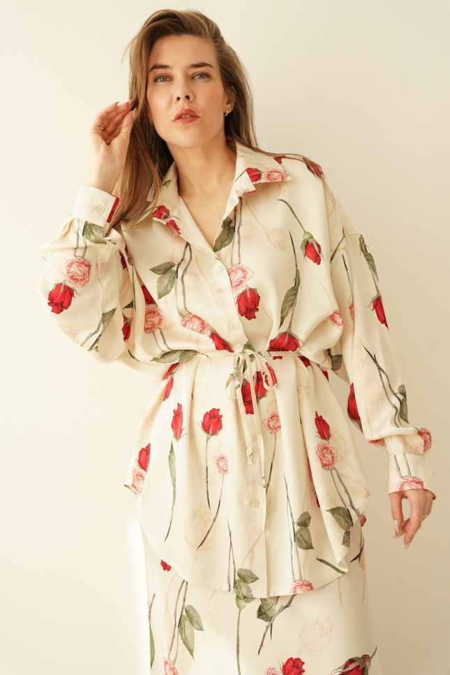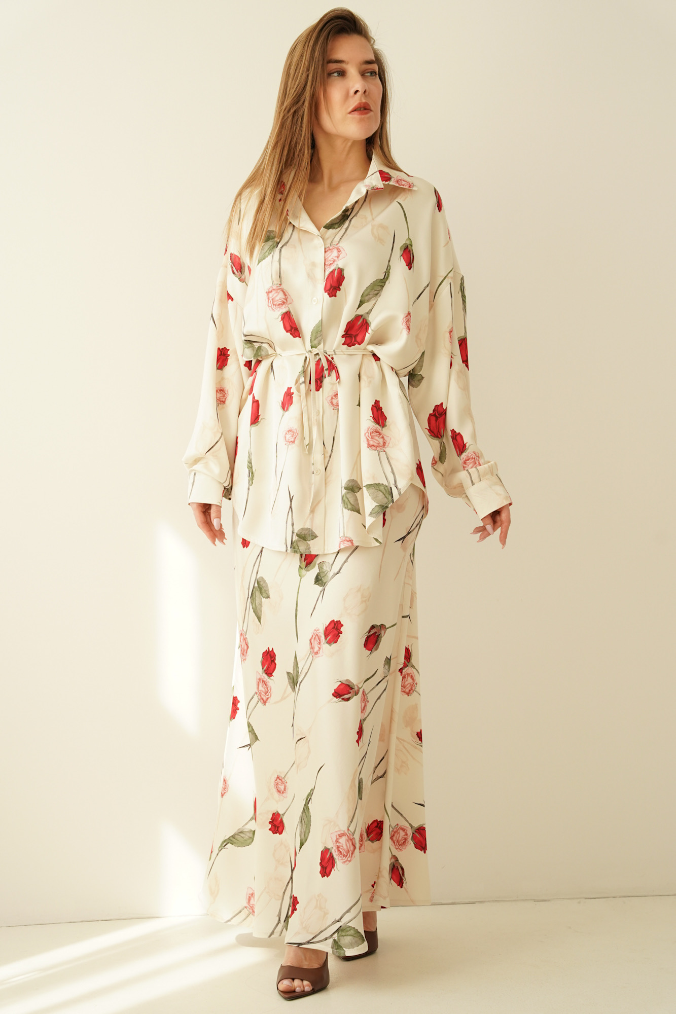 Women's shirt and maxi skirt set: Anais roses on light beige